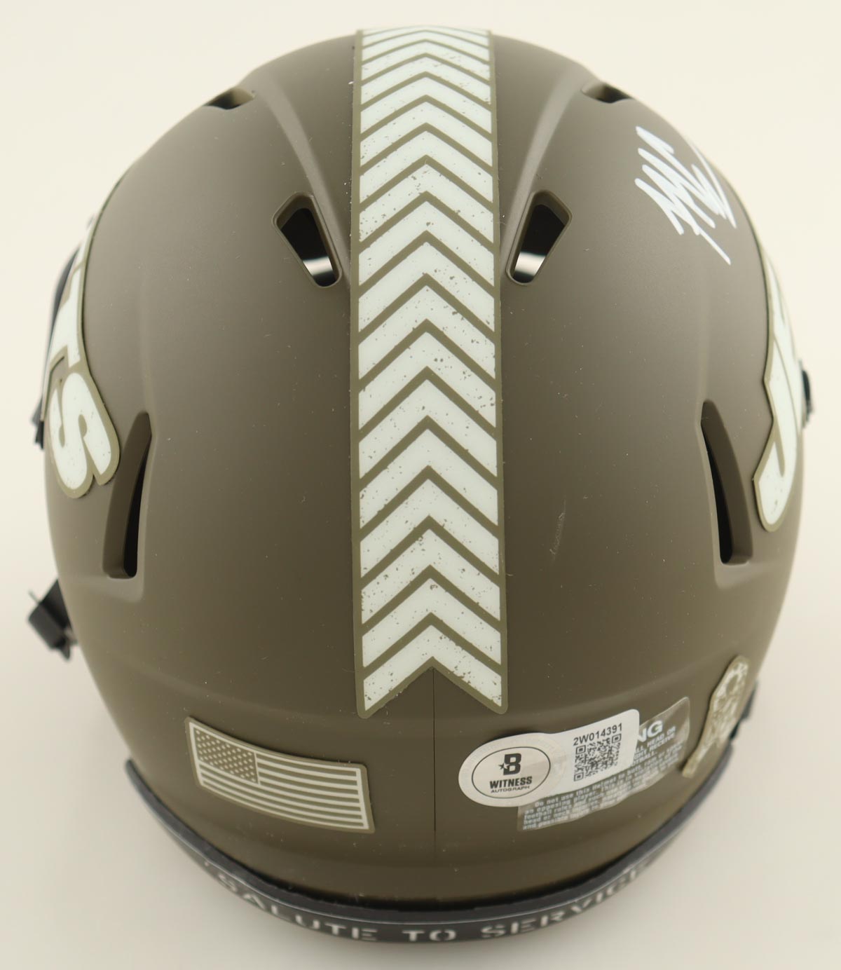 Malachi Corley Signed Jets Salute To Service Alternate Speed Mini Helmet (Beckett)