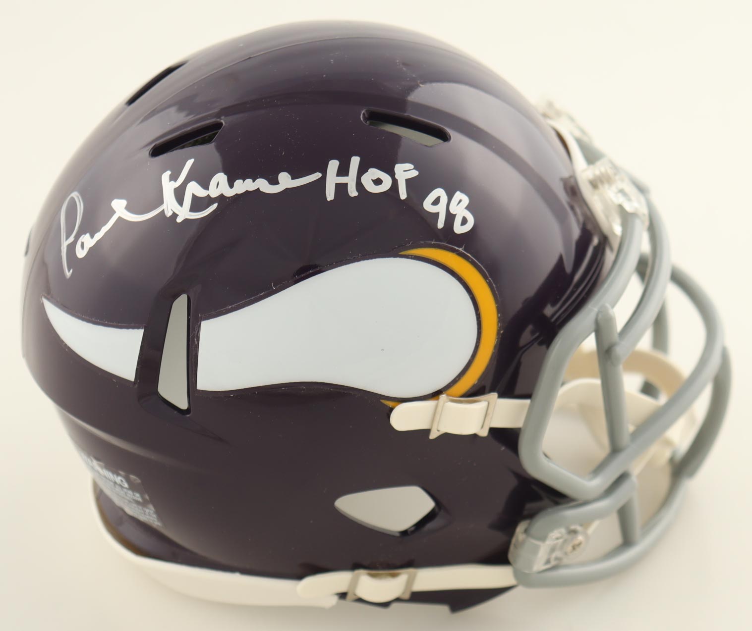 Riddell Minnesota Vikings Speed mini helmet has been hand-signed and inscribed by Paul Krause (HOF).