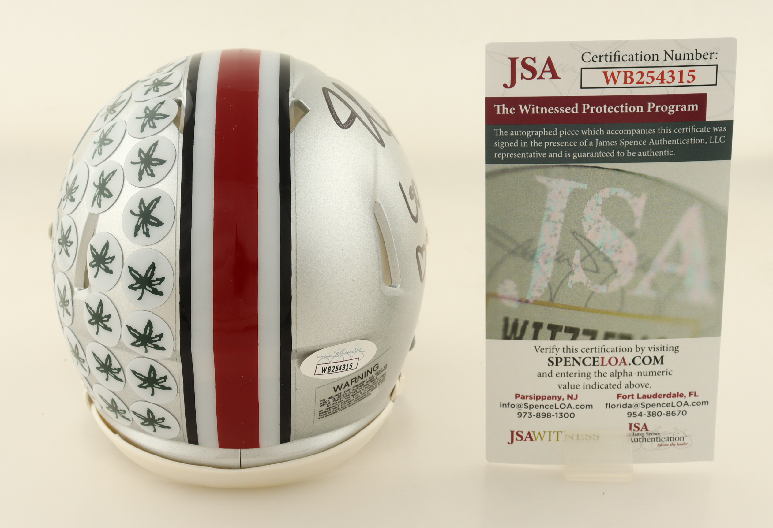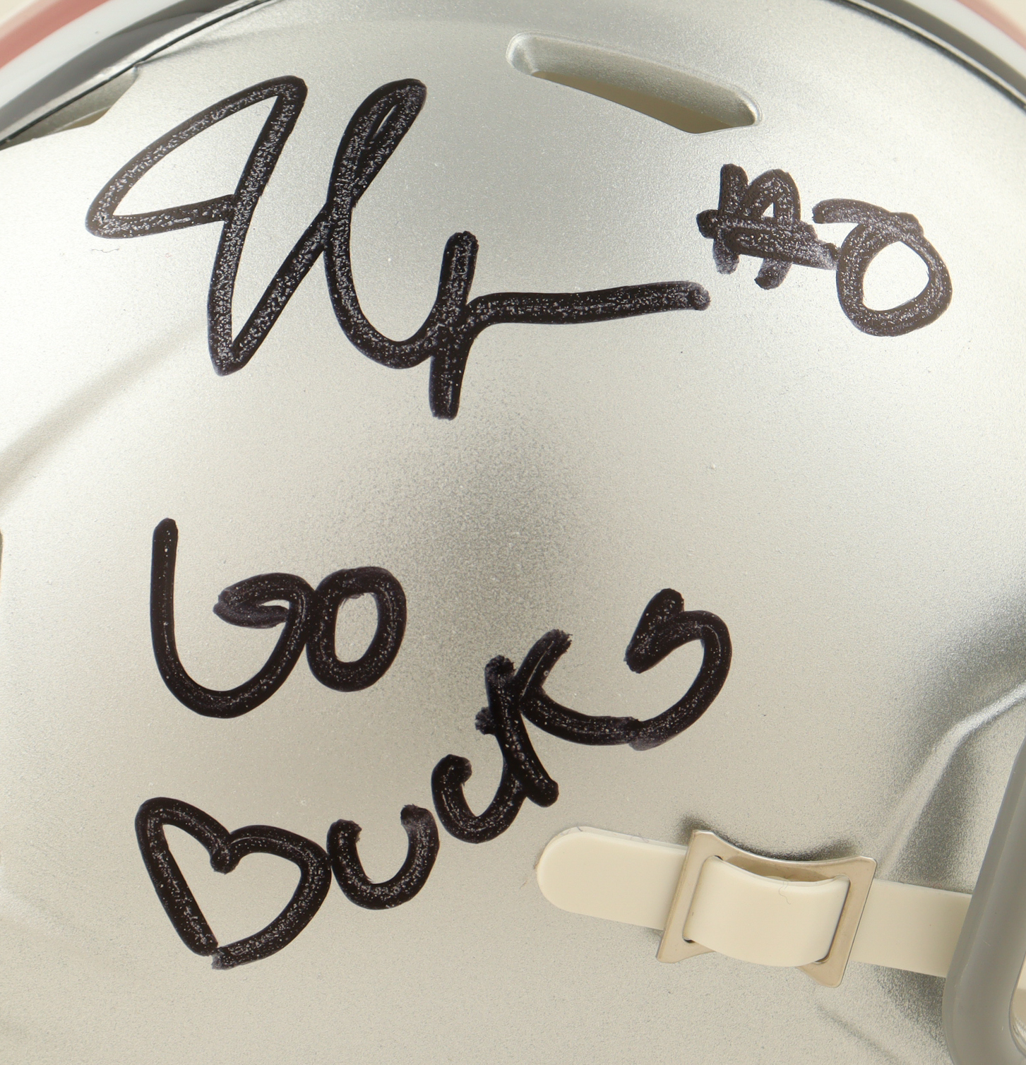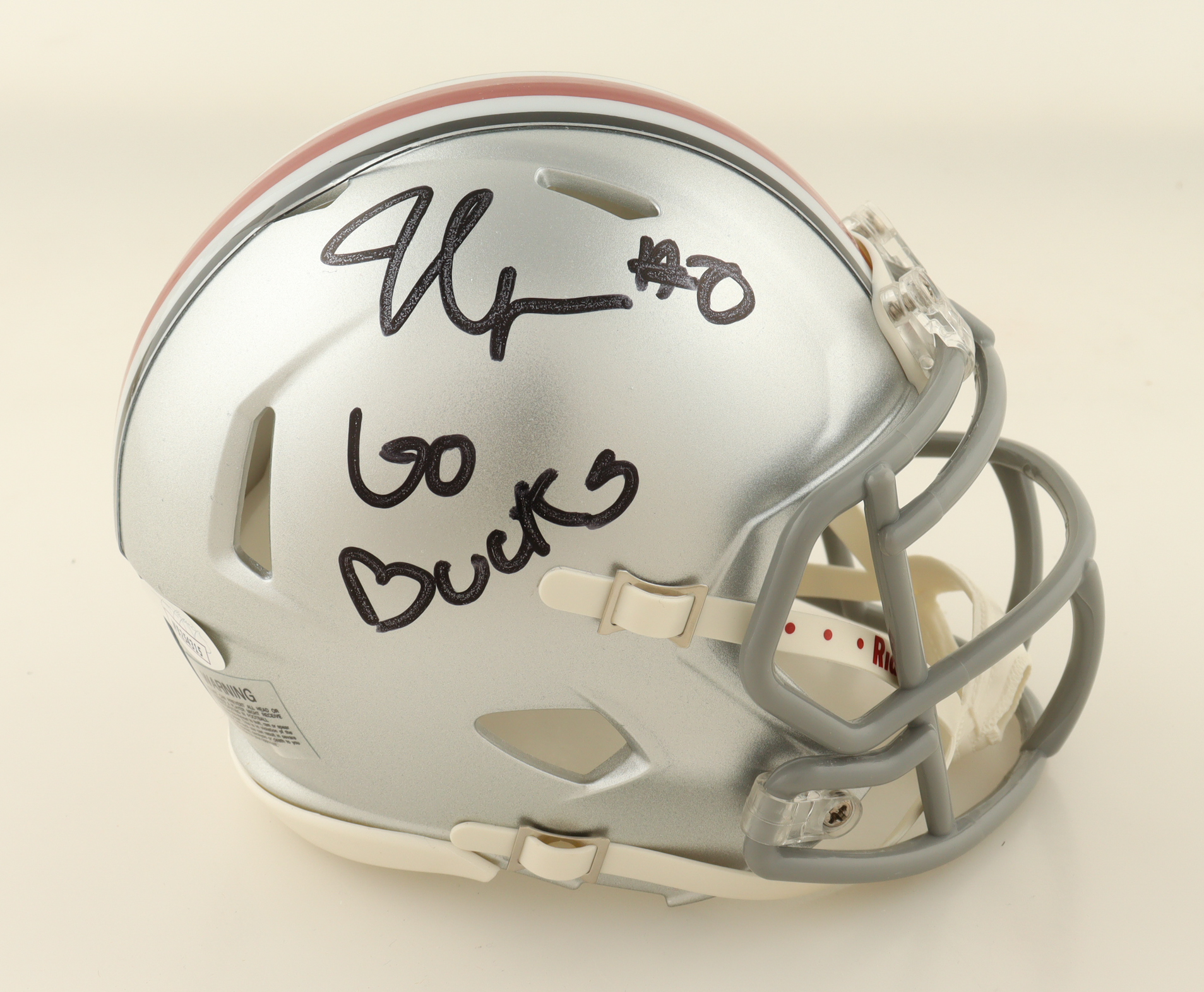 Riddell Ohio State Buckeyes Speed mini helmet has been hand-signed and inscribed by Jonathan Cooper.