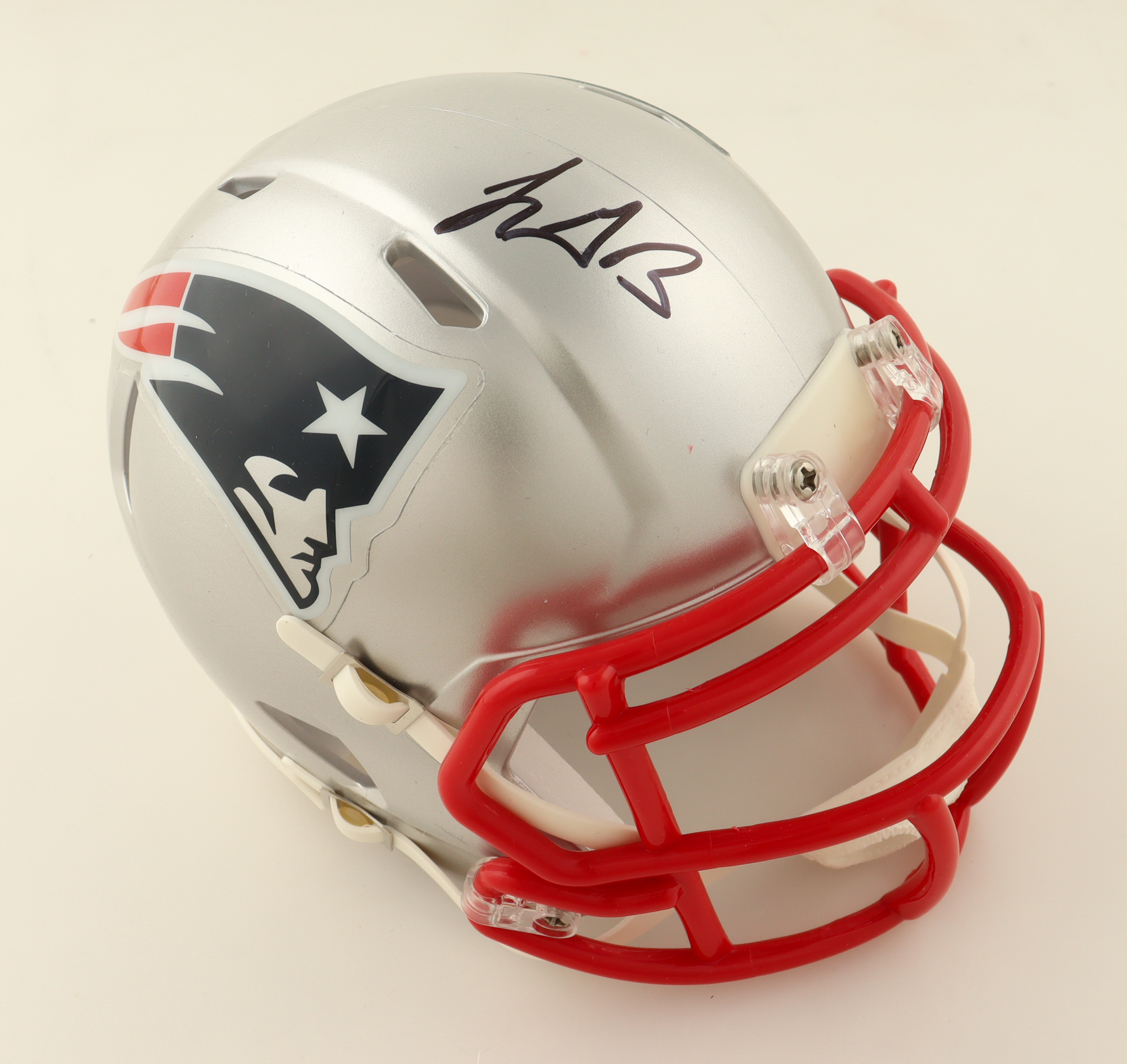 Riddell New England Patriots speed mini helmet has been hand-signed by LeGarrette Blount.