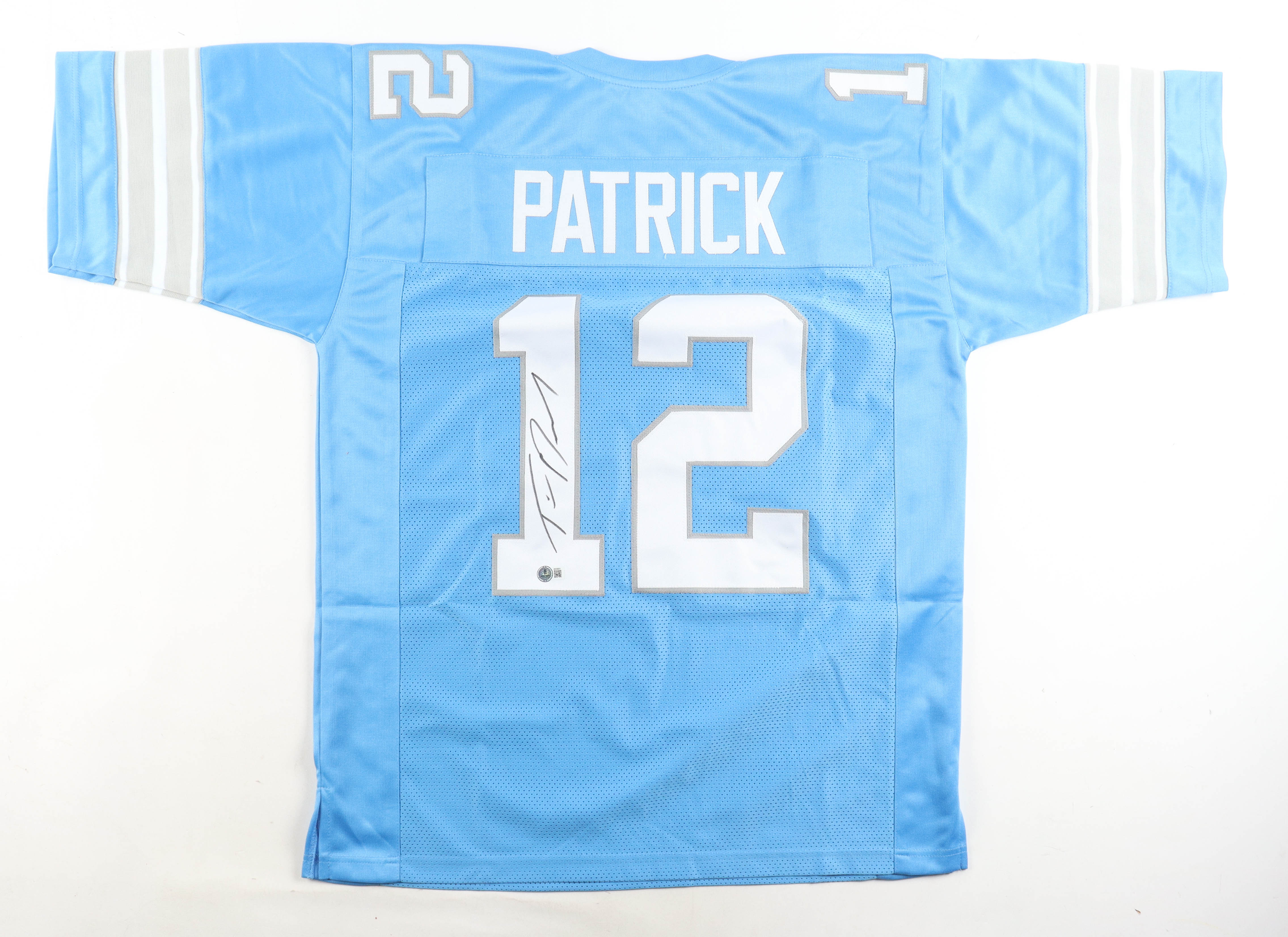 Custom jersey with everything sewn on, size XL. Hand-signed by Tim Patrick.