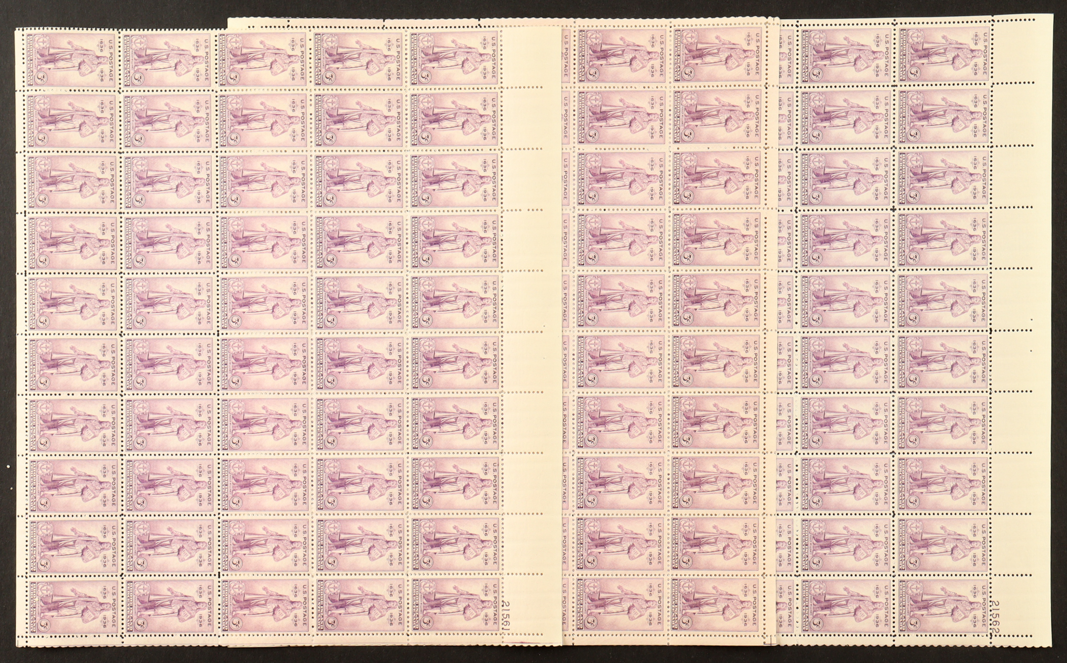 U.S. Postage 3¢ "Rhode Island Tercentenary" Stamp - Issued May 4th 1936 - Full Original Uncut Sheet Of (50) Stamps