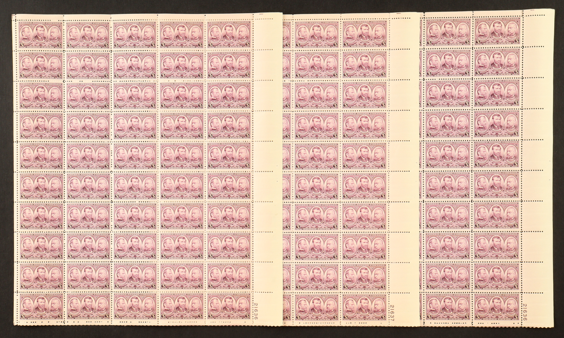 U.S. Postage 3¢ "Sherman, Grant, Sheridan" Civil War Generals Stamp - Issued February 18th 1937 - Full Original Uncut Sheet Of (50) Stamps