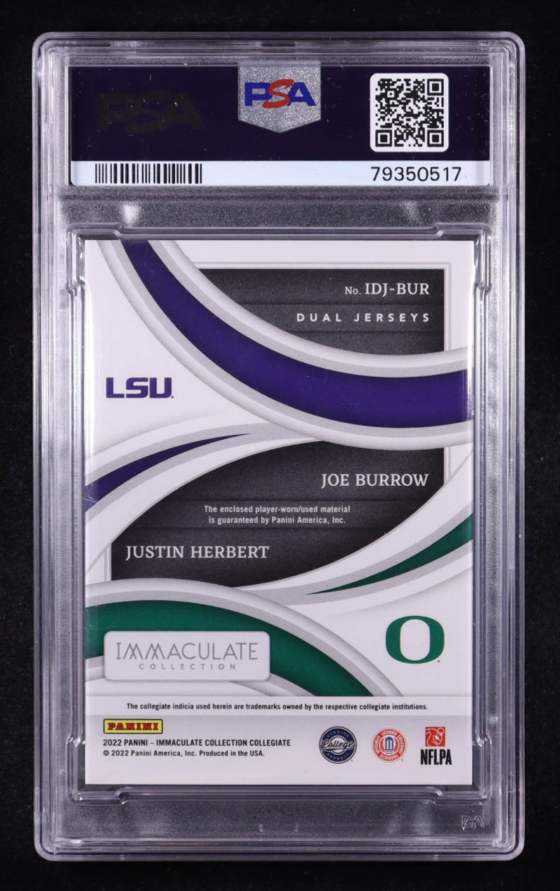 Joe Burrow / Justin Herbert 2022 Immaculate Collection Collegiate Immaculate Dual Jerseys Gold #2 #22/25 (PSA 9)