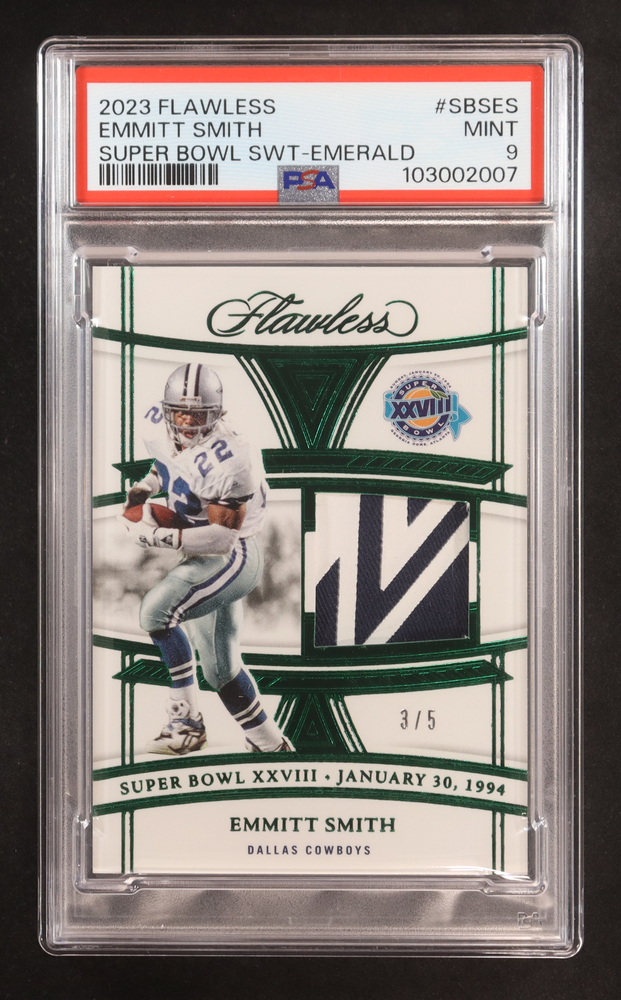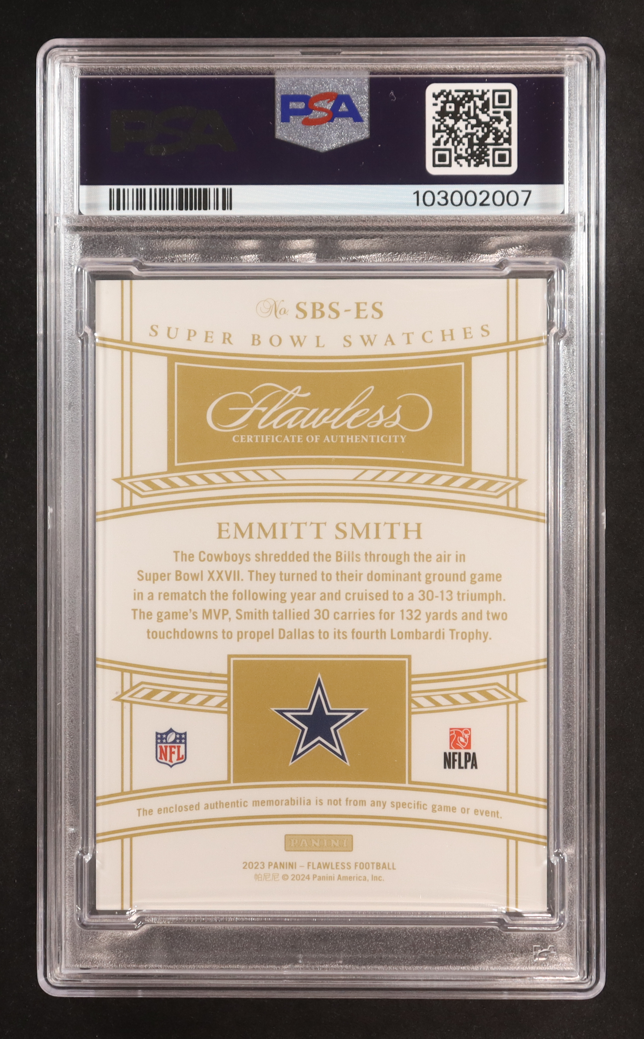 Emmitt Smith 2023 Panini Flawless Super Bowl Swatches Emerald #6 #3/5 (PSA 9)
