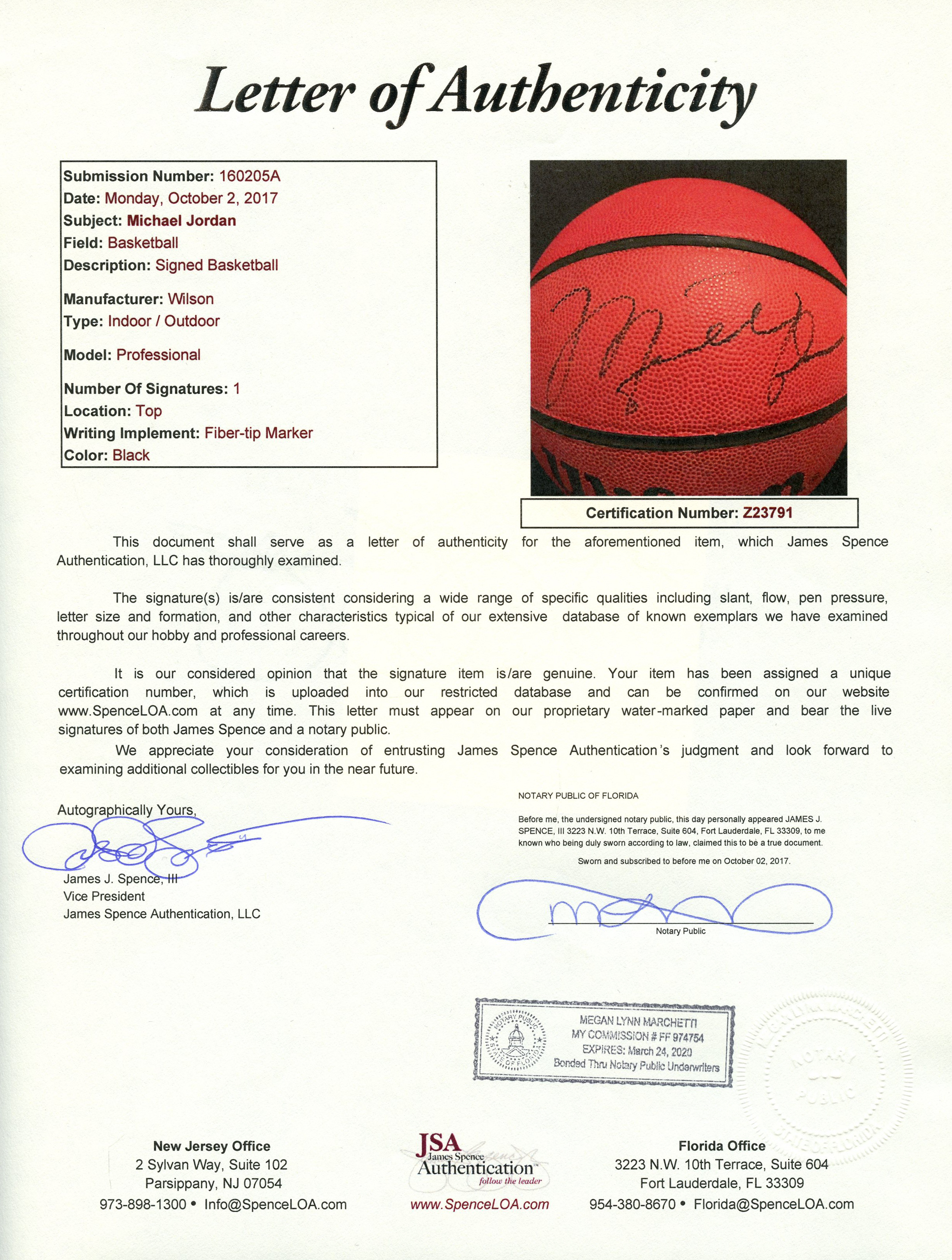 Michael Jordan Signed Wilson Professional Indoor/Outdoor Basketball (JSA LOA)