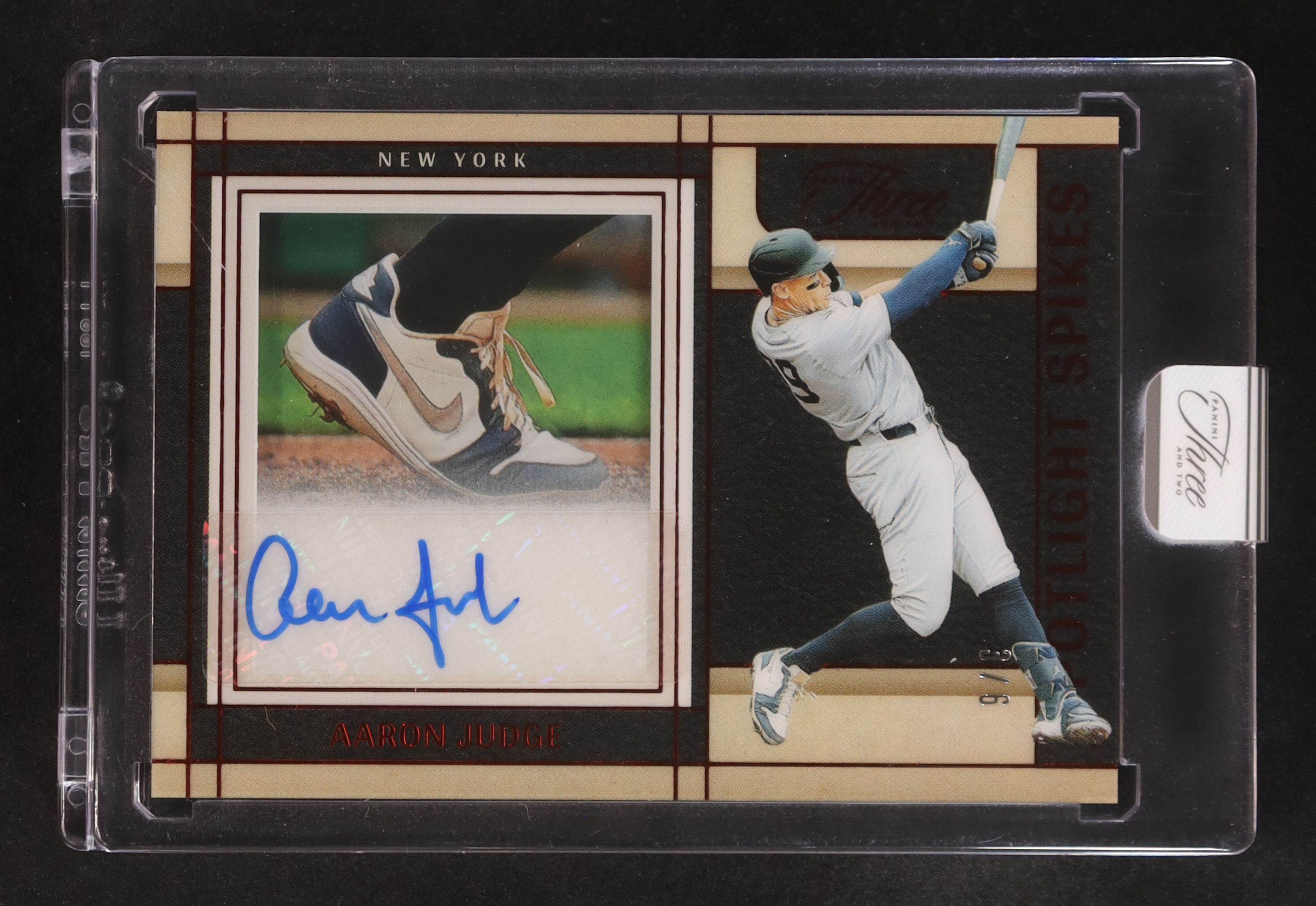 Aaron Judge 2025 Panini Three and Two Spotlight Spikes Signatures Red FOTL #1 #3/6