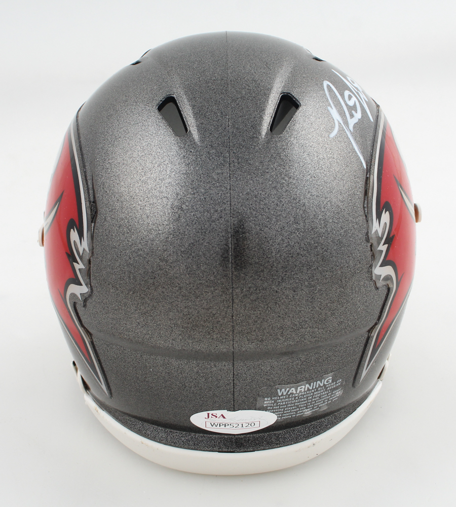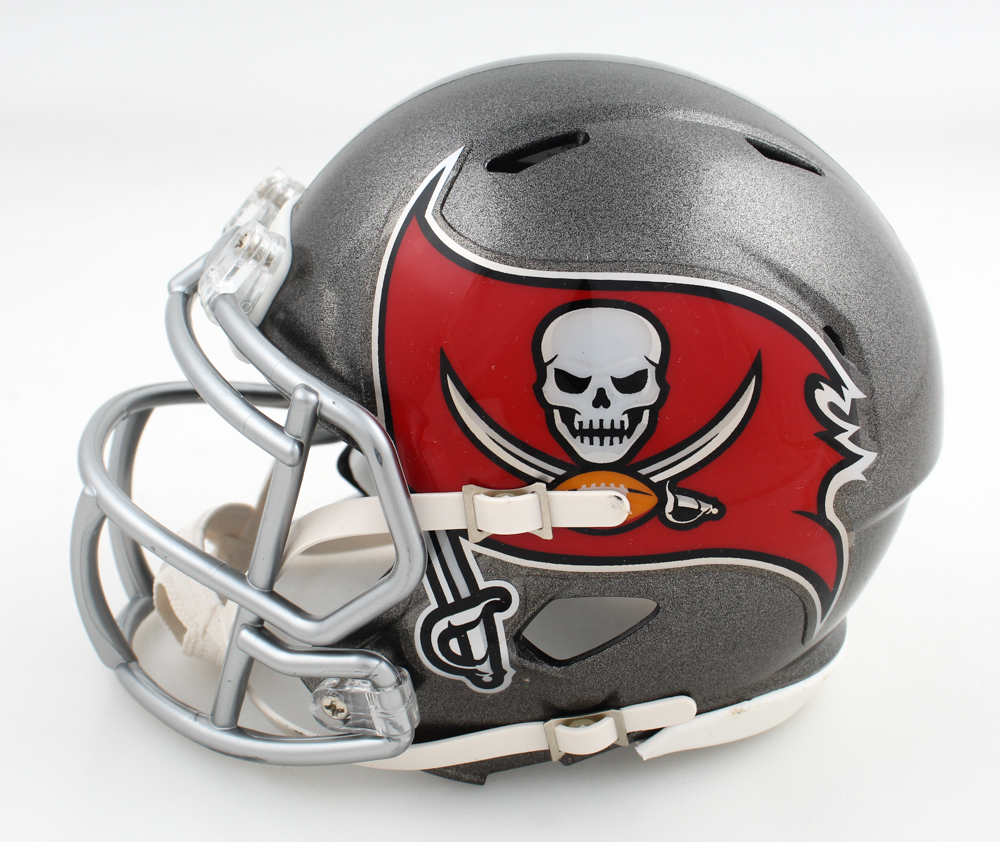 Riddell Tampa Bay Buccaneers Speed mini helmet has been hand-signed by Ronald Jones.