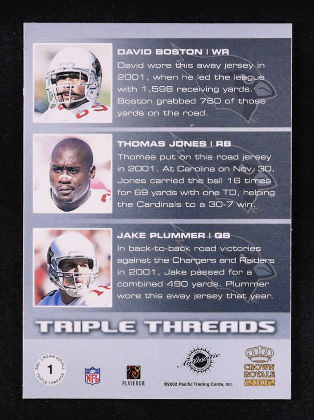 David Boston / Thomas Jones / Jake Plummer 2001 Pacific Impressions Triple Threads #1