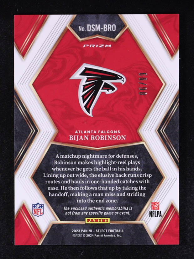 Bijan Robinson 2023 Select Draft Selections Memorabilia Prizm #7 #86/99 RC