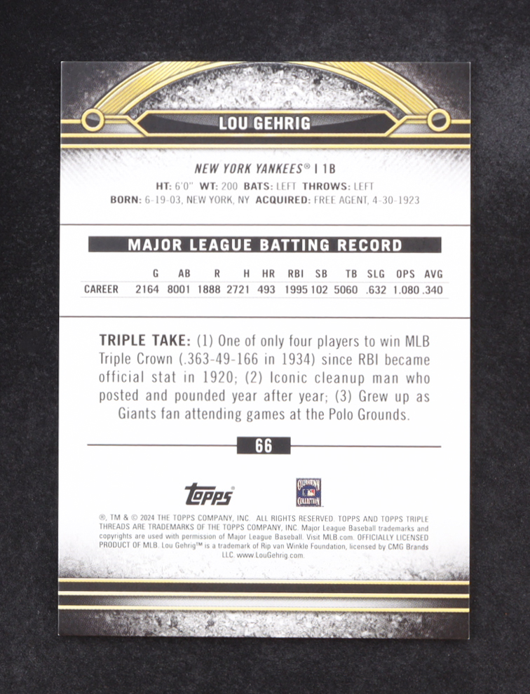 Lou Gehrig 2024 Topps Triple Threads Amber #66 #108/199