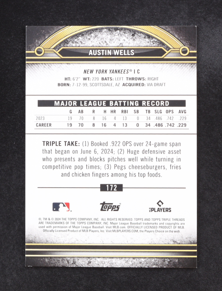 Austin Wells 2024 Topps Triple Threads Amber #172 RC #092/199