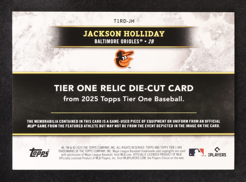 Jackson Holliday 2025 Topps Tier One Relics Die Cut #T1RDJH #49/99