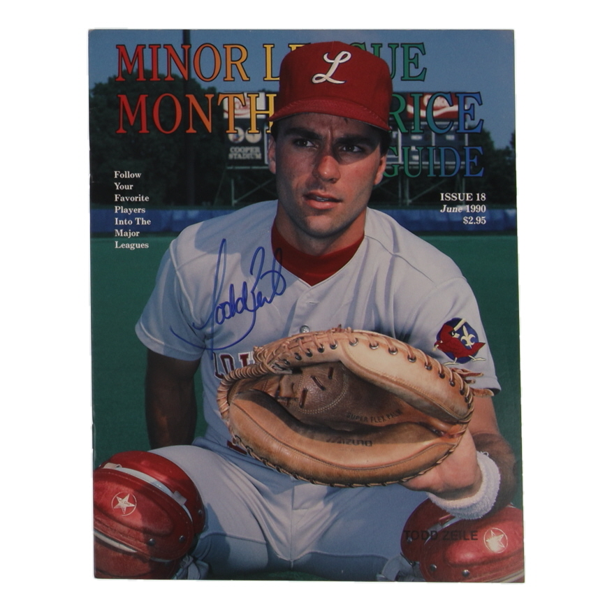 June 1990 Issue #18 of Minor League Monthly Price Guide has been hand-signed on the front cover by Todd Zeile (St. Louis Cardinals) and the back cover by Stan Musial (D. 2013, St. Louis Cardinals, HOF). Please see photos for details regarding the condition of the guide.