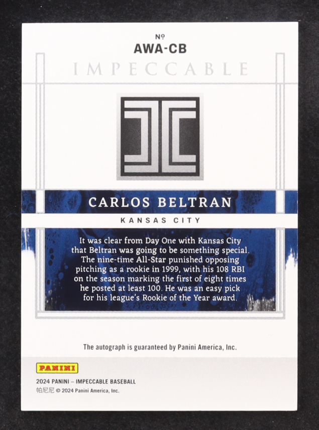 Carlos Beltran 2024 Panini Impeccable Award Winning Autographs #14 #29/35