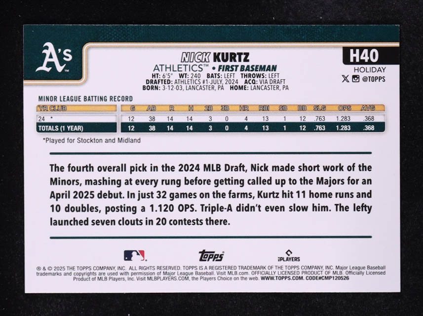Nick Kurtz 2025 Topps Holiday Gold Lights #H40 RC