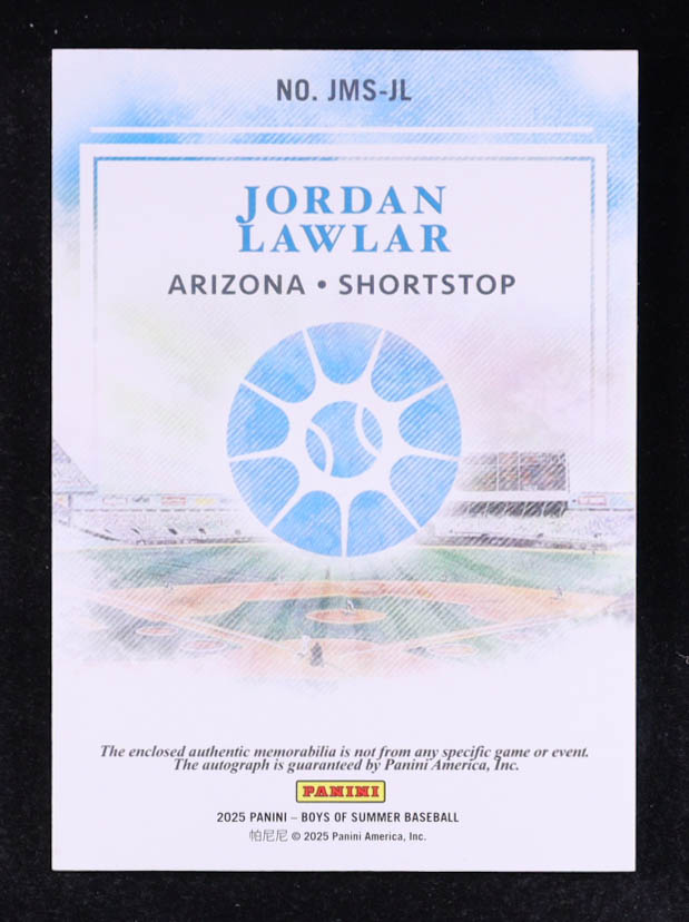 Jordan Lawlar 2025 Panini Boys of Summer Jumbo Material Signatures #12 #62/99 RC