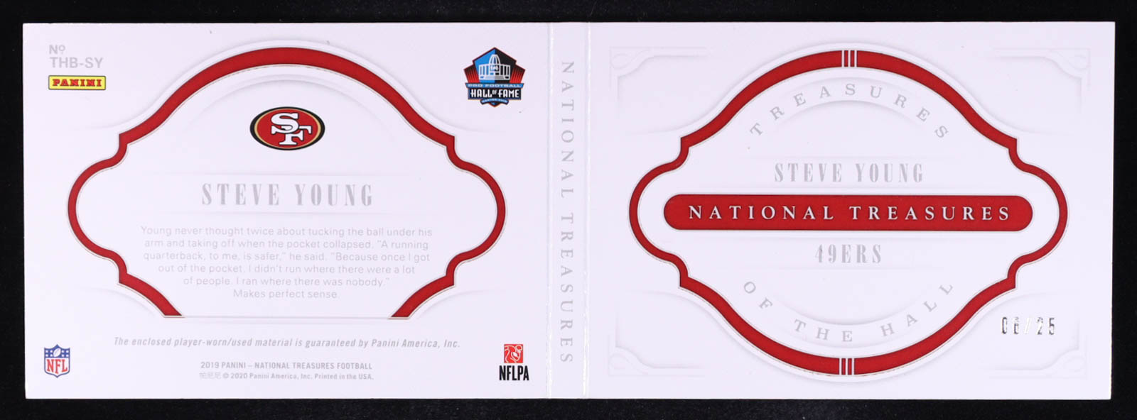 Steve Young 2019 Panini National Treasures Treasures of the Hall Material Booklets #6 #06/25
