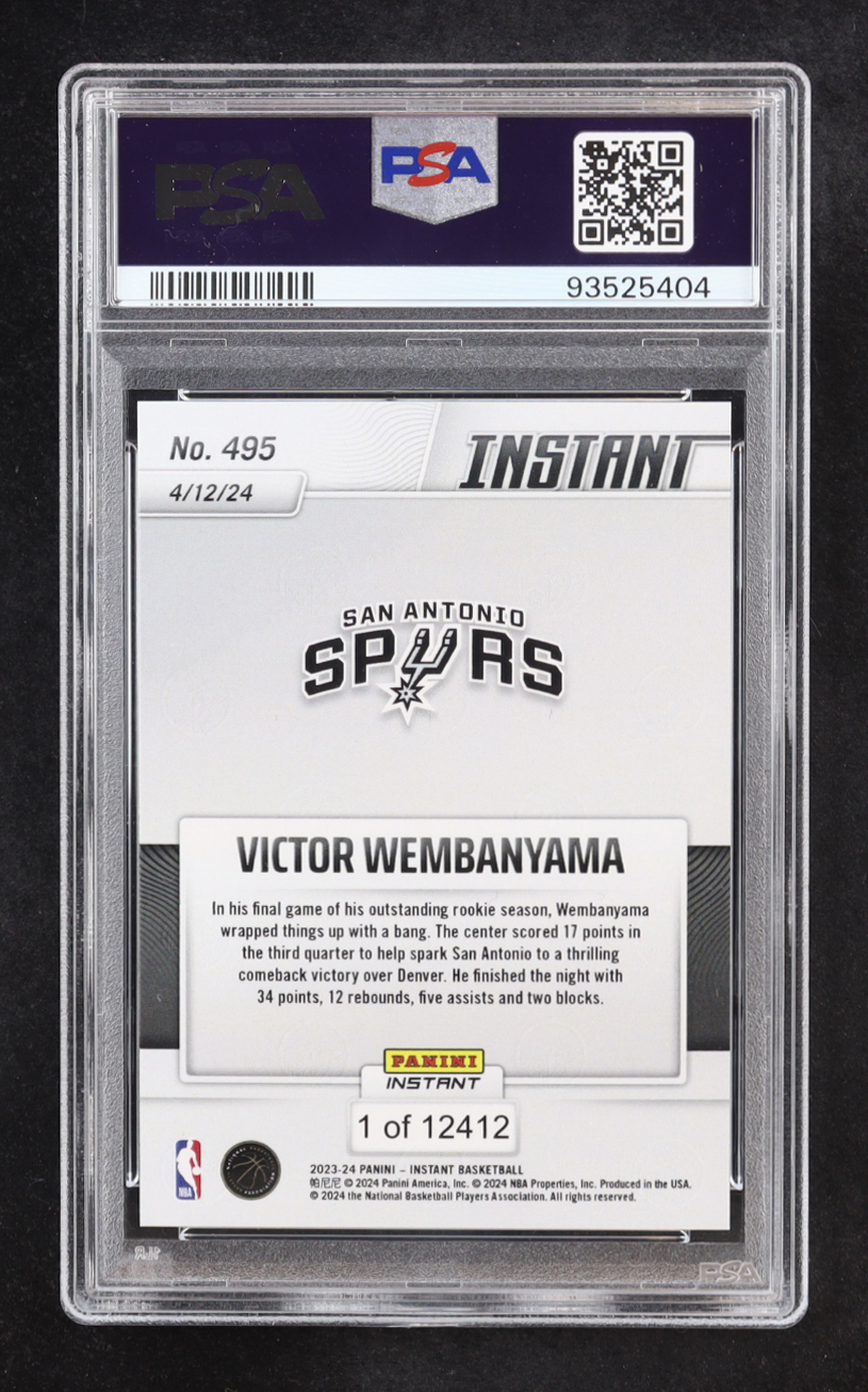 Victor Wembanyama 2023-24 Panini Prizm Instant #495 RC #1/12412 (PSA 9)