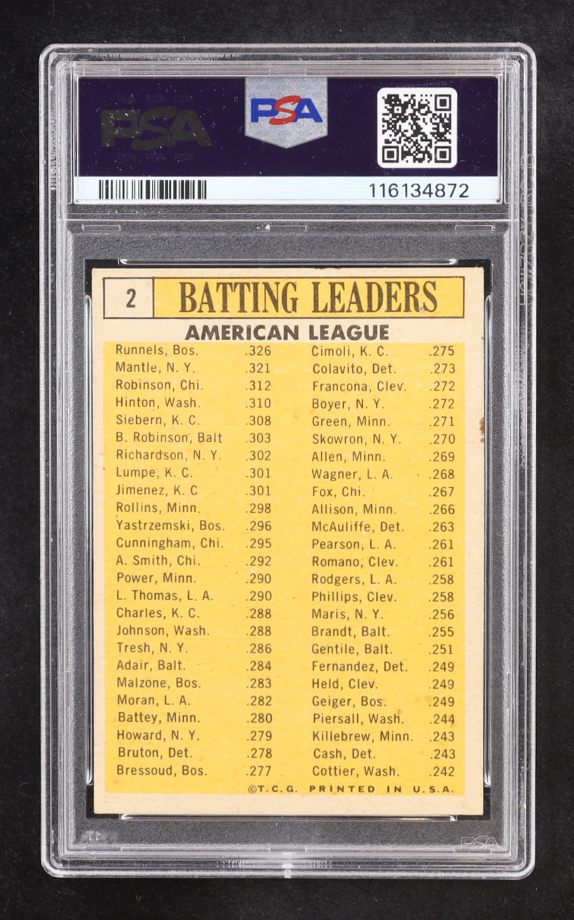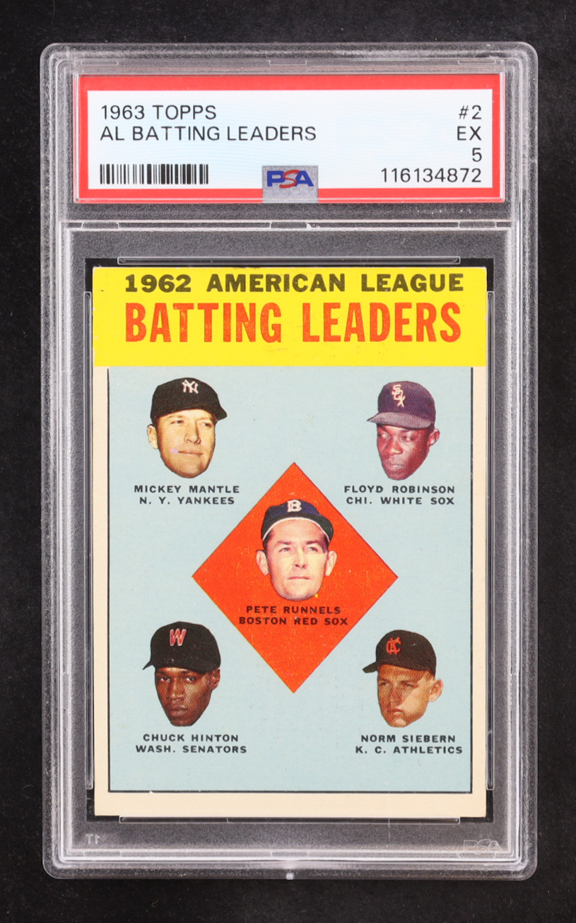 1963 Topps AL Batting Leaders #2 (PSA 5) Mickey Mantle / Floyd Robinson / Pete Runnels / Chuck Hinton / Norm Siebern