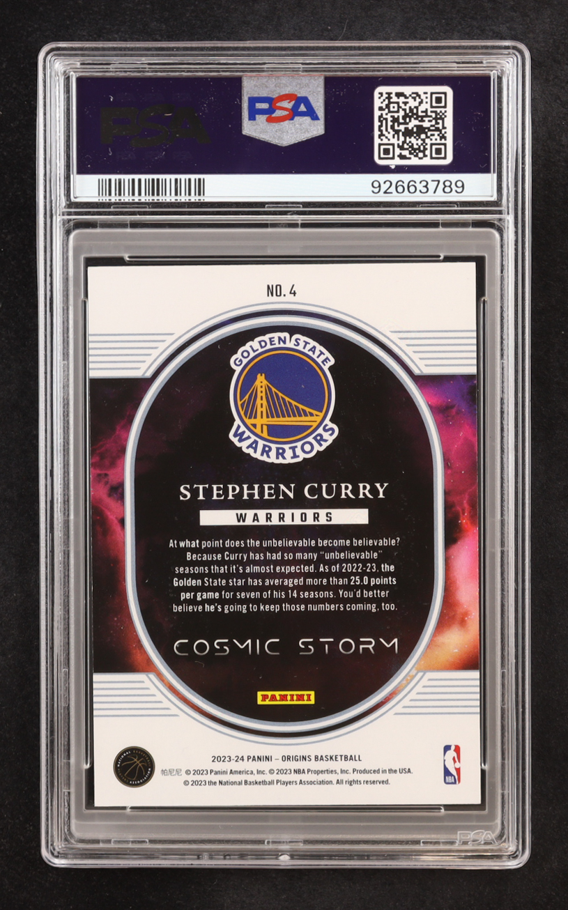 Stephen Curry 2023-24 Panini Origins Cosmic Storm #4 (PSA 8)