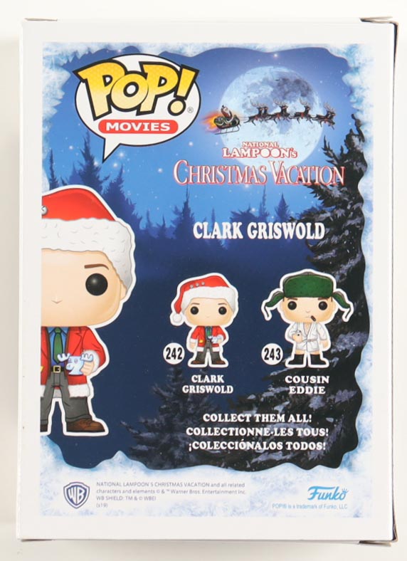 Funko Pop! vinyl figure measures approximately 4" tall and has been hand-signed on the packaging by Chevy Chase (Clark W. Griswold).