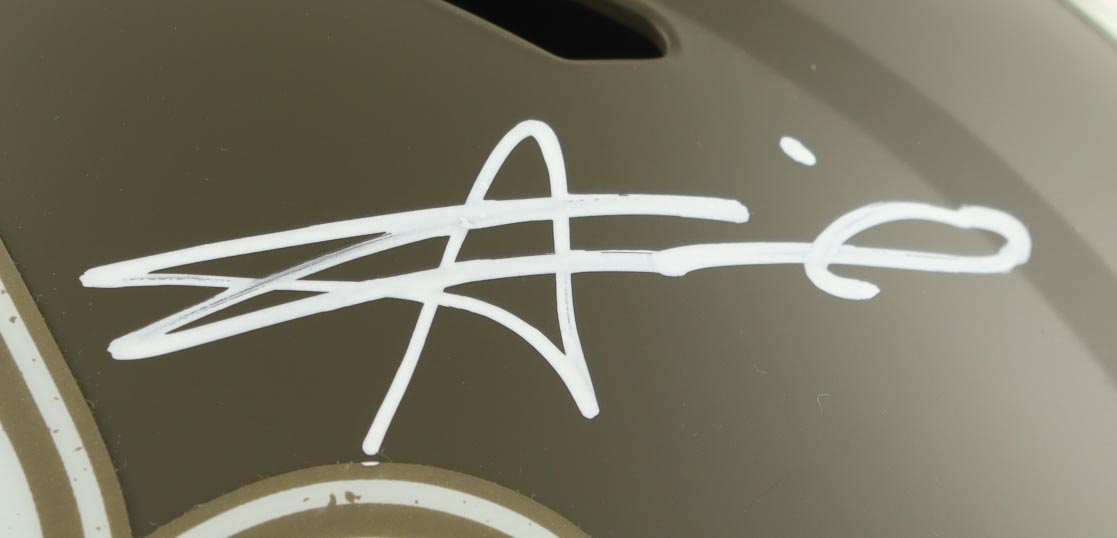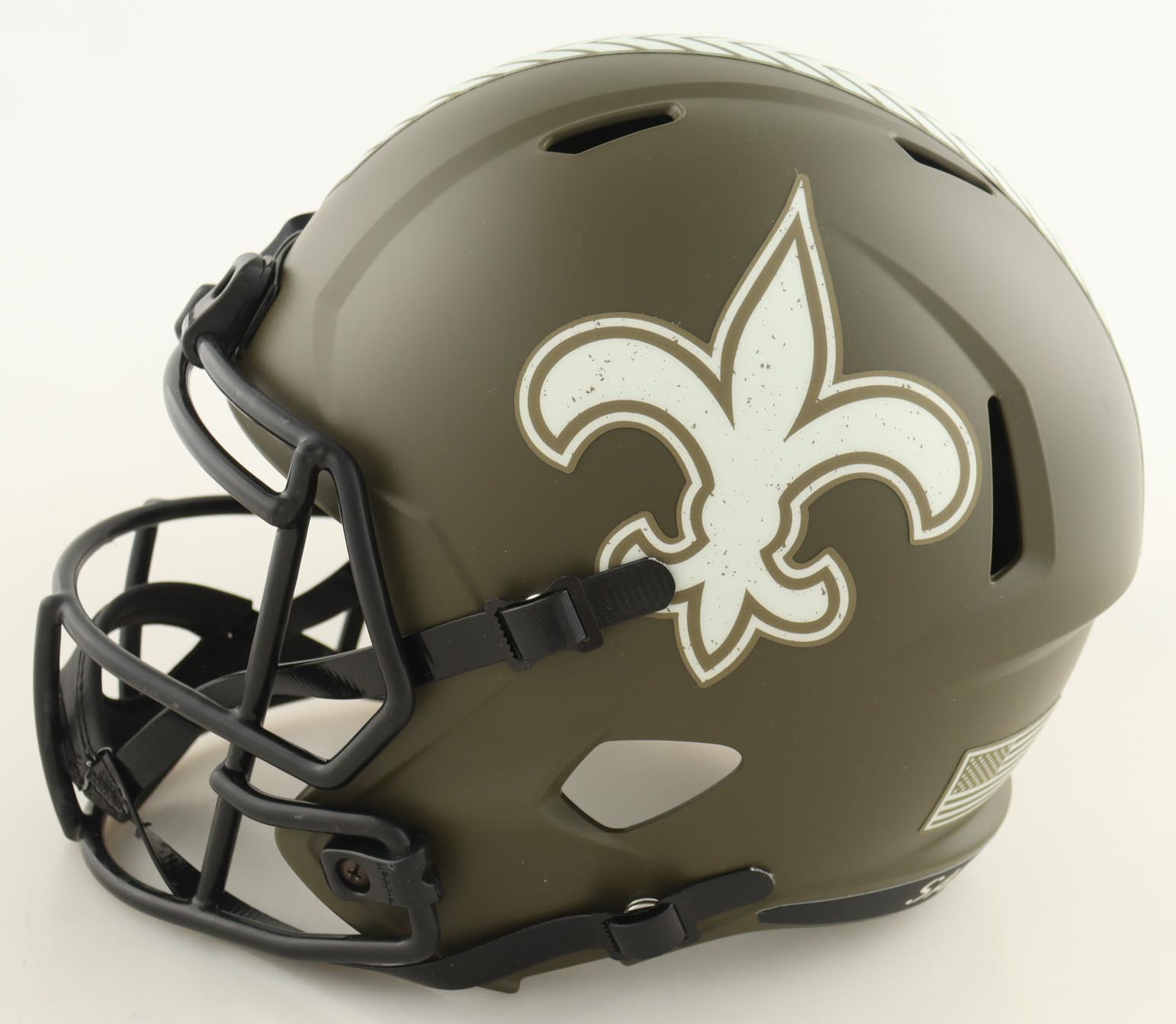 Riddell New Orleans Saints Full-Size Salute To Service Alternate Speed Replica Helmet has been hand-signed by Alvin Kamara.