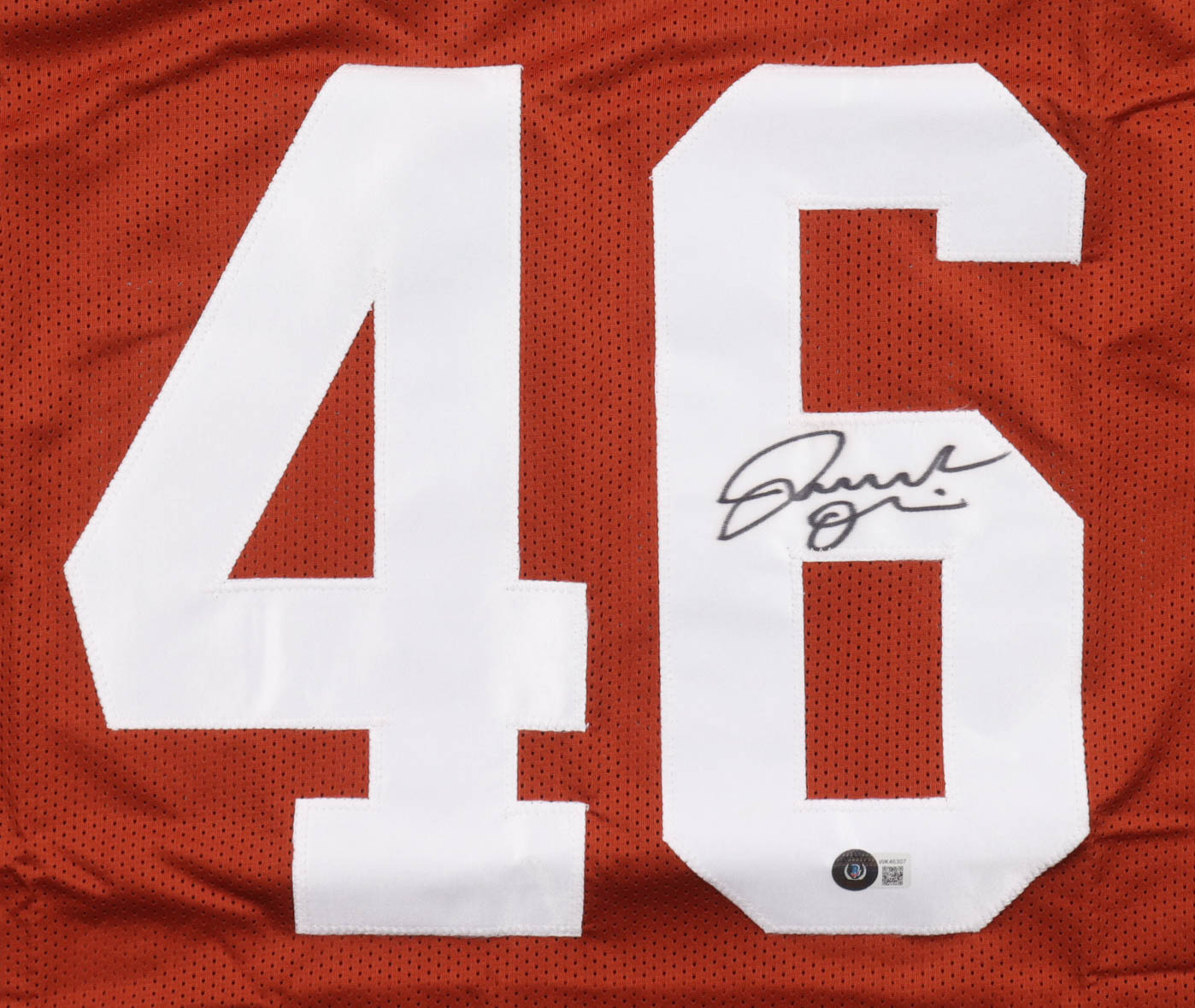 Custom jersey with everything sewn on, size XL. Hand-signed by Joseph Ossai.