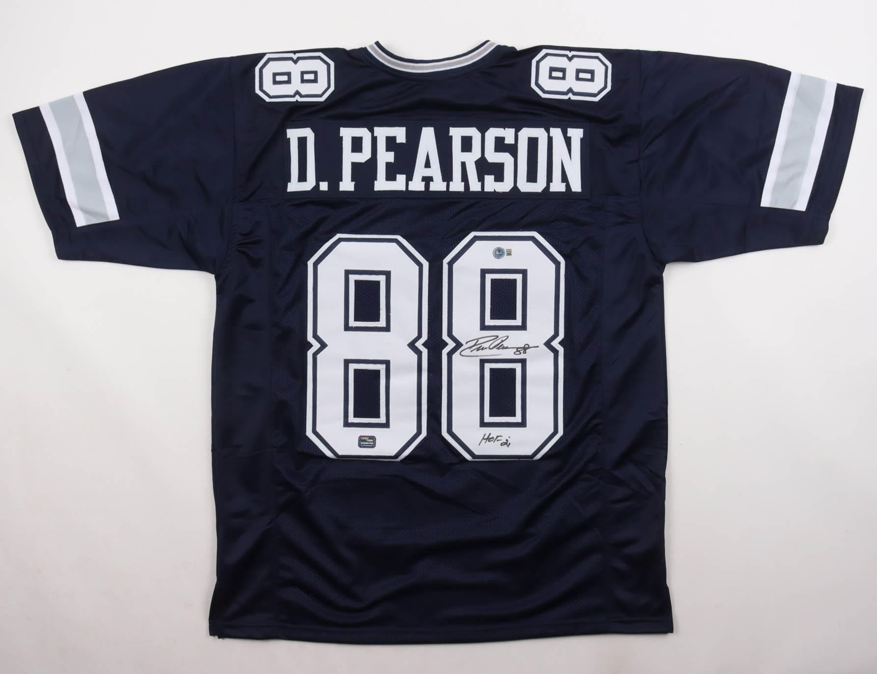 Custom jersey. Everything is sewn on, size XL. Hand-signed and inscribed by Drew Pearson (HOF).