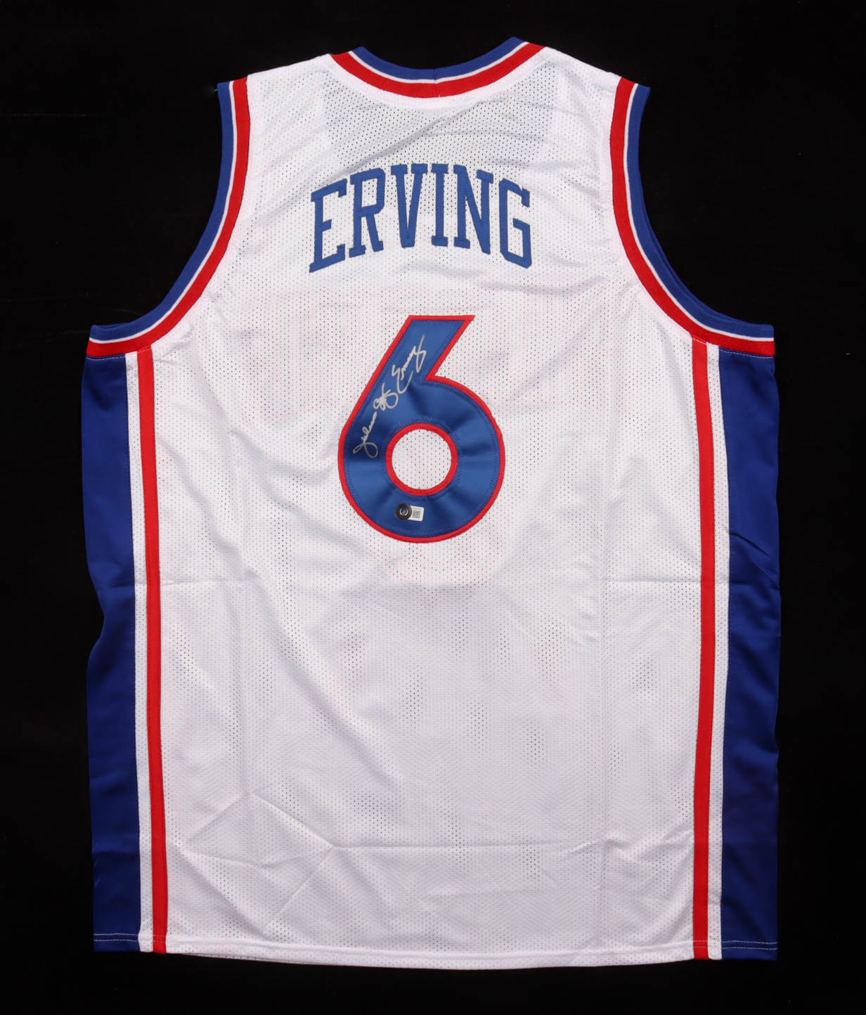 Custom jersey with everything sewn on, size XL. Has been hand-signed by Julius "Dr. J" Erving (HOF).