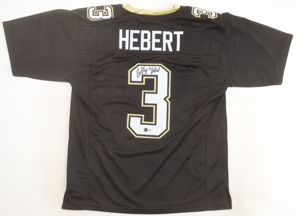 Custom jersey with everything sewn on, size XL. Hand-signed by Bobby Hebert.