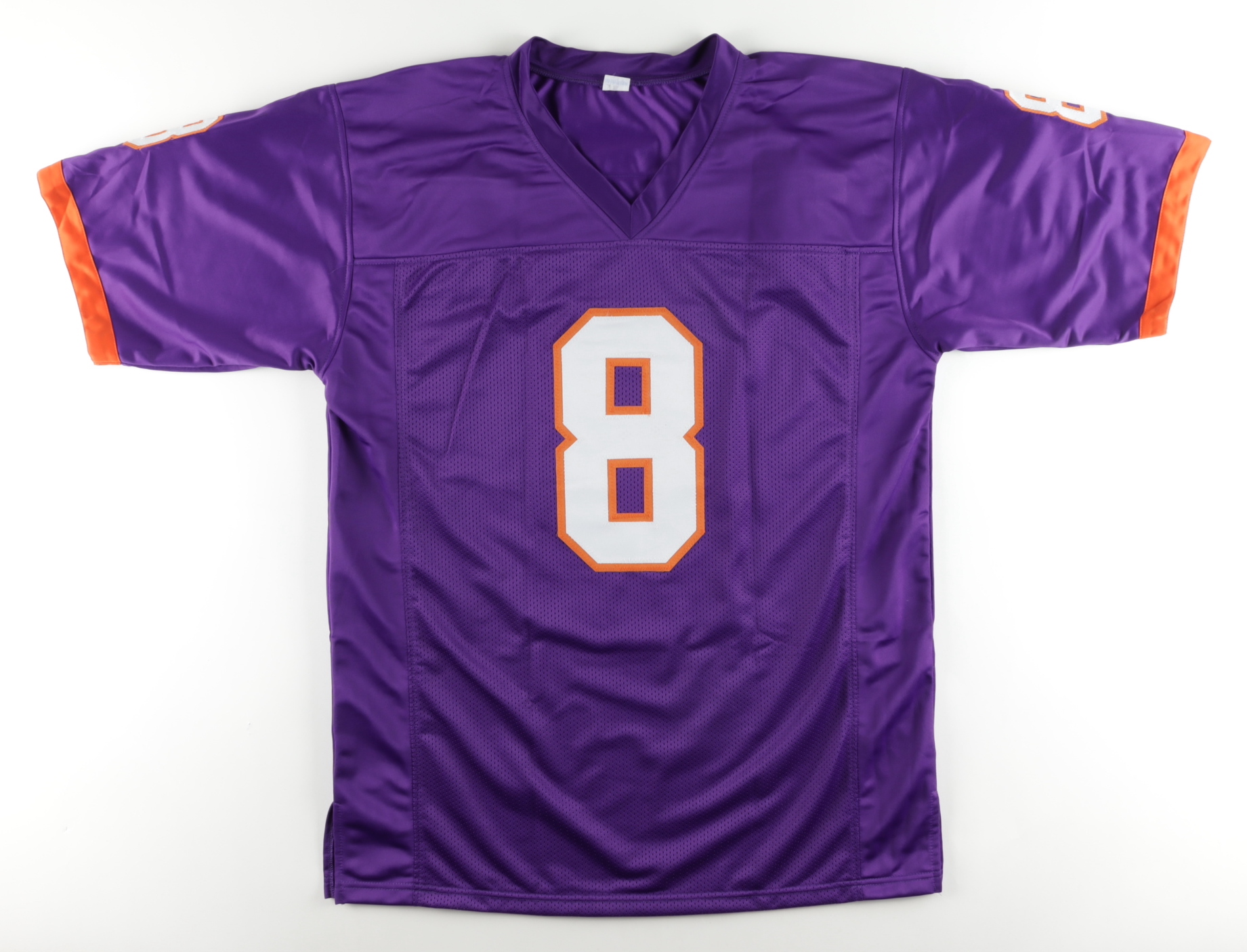 Custom on-field style jersey. Everything is sewn on, size XL. Hand-signed by Justyn Ross. Please note, the signature is stitched through. See photos for more details.