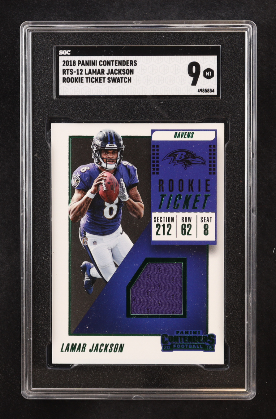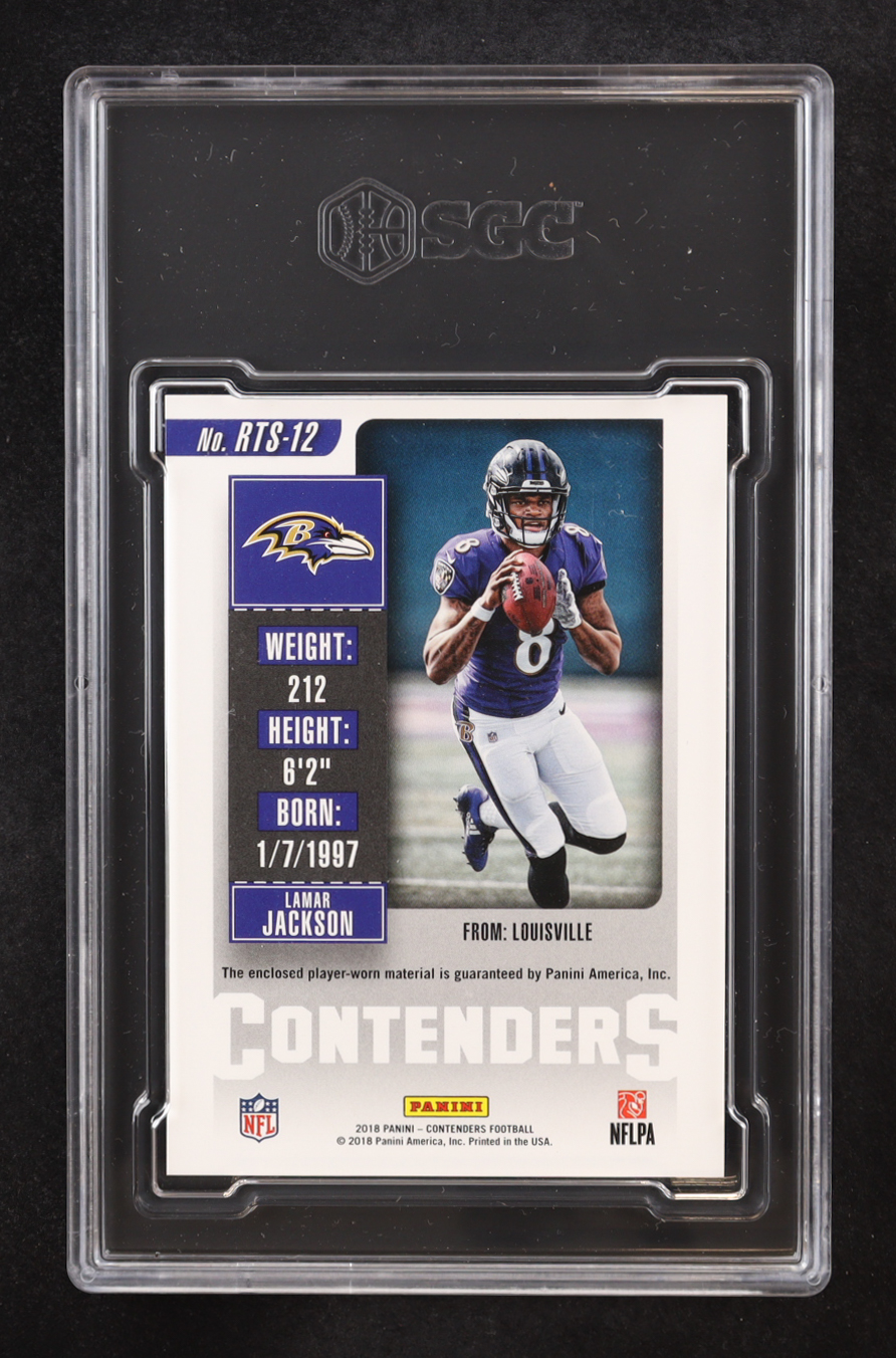 Lamar Jackson 2018 Panini Contenders Rookie Ticket Swatch #RTS-12 (SGC 9)