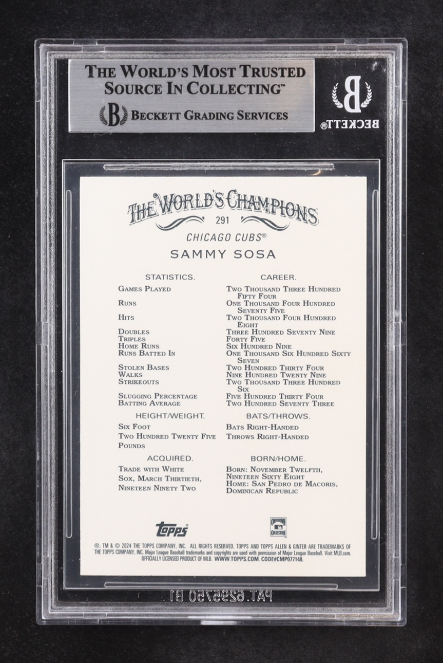 Sammy Sosa Signed 2024 Topps Allen & Ginter Silver Portrait #291 (BGS)