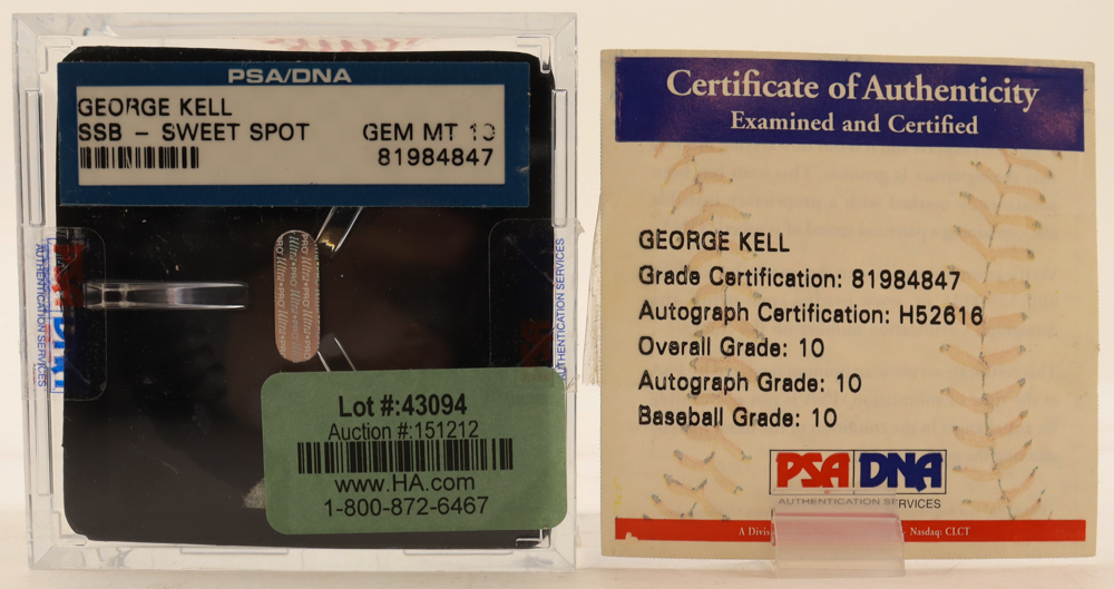 George Kell Signed OML Baseball Inscribed "HOF 83" (PSA 10)