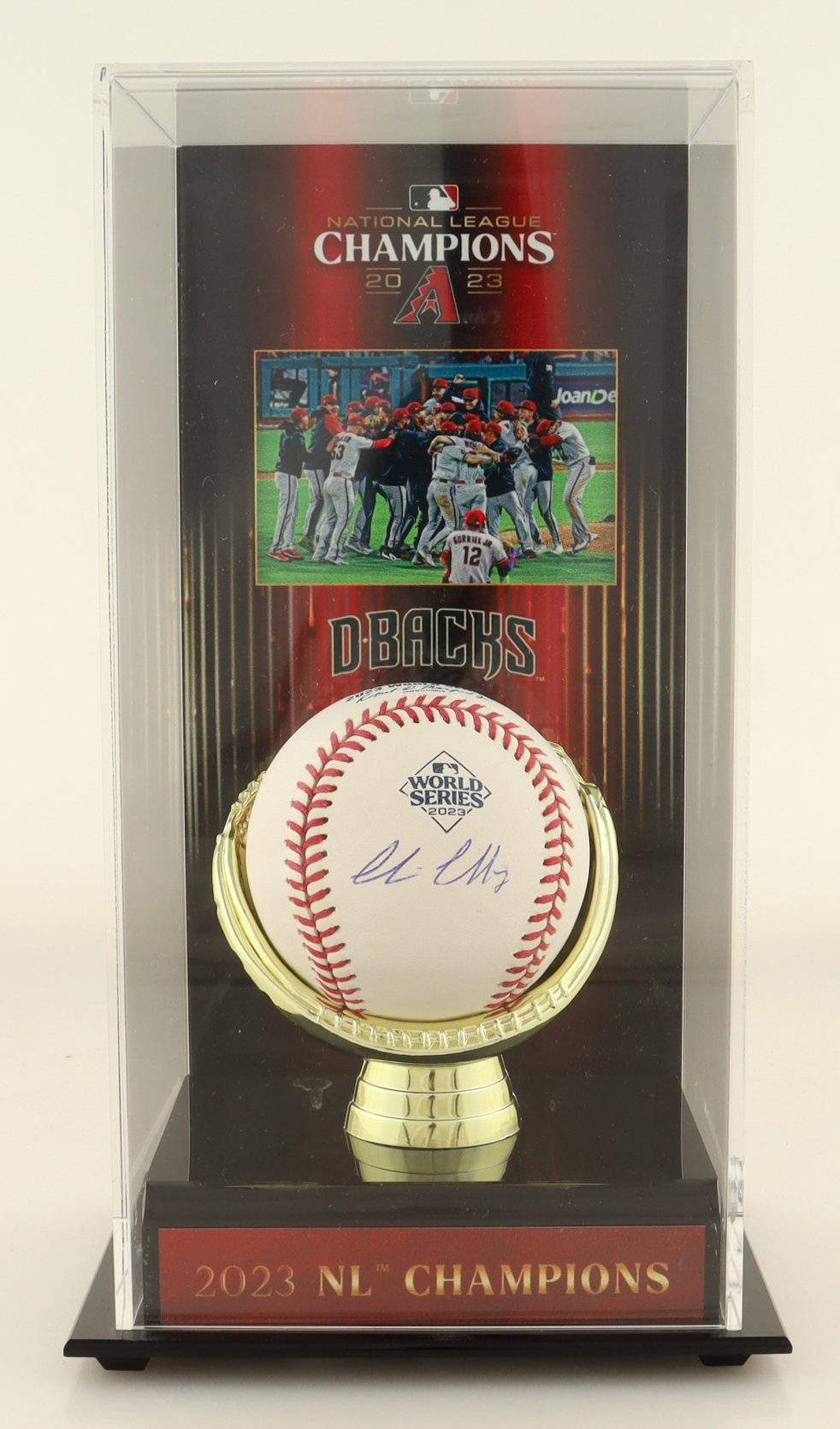 Corbin Carroll Signed 2023 World Series Baseball With 2023 NL Champs Gold Glove Display Case (Fanatics & MLB)