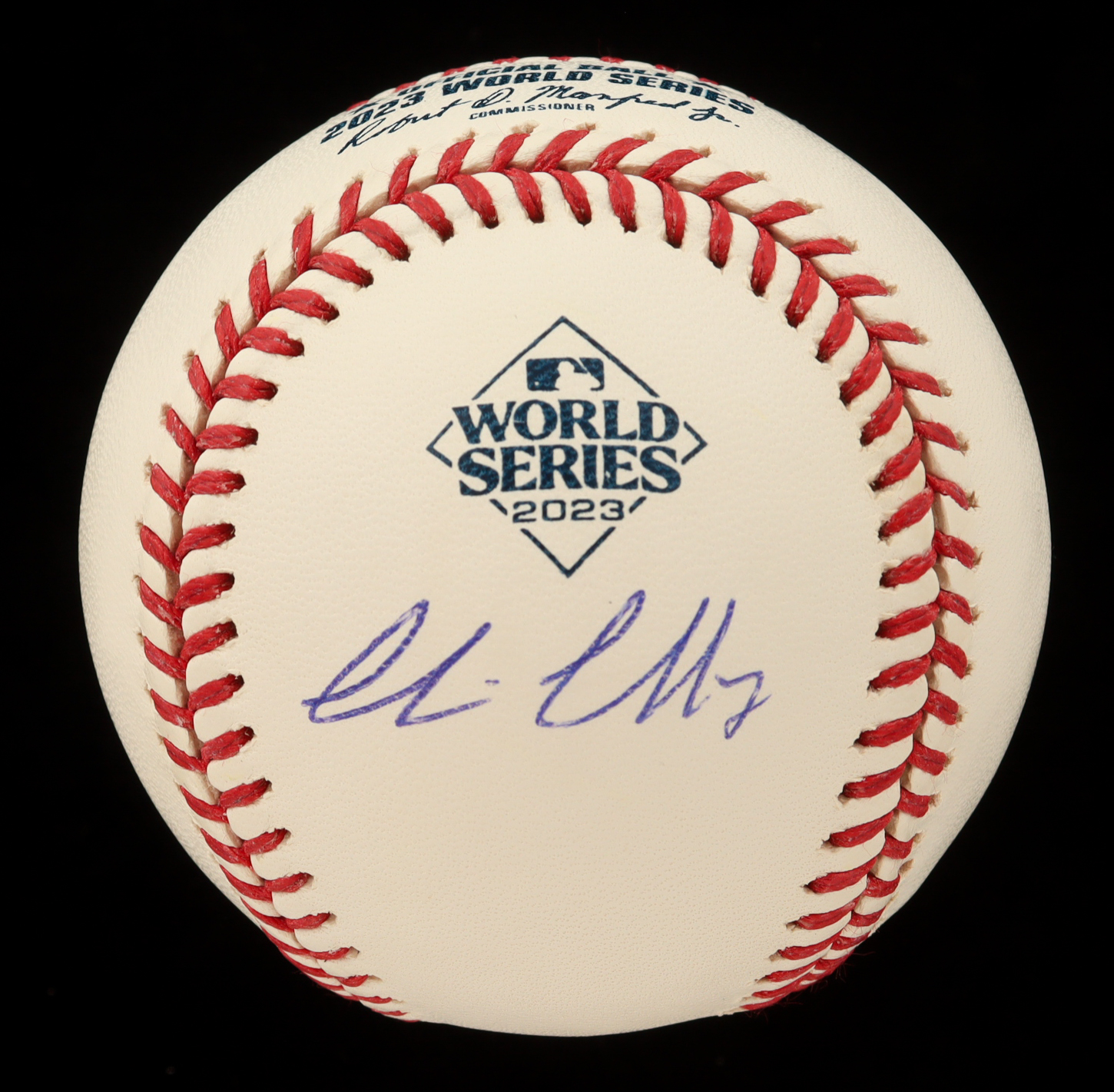 Rawlings Official 2023 World Series Baseball. Hand-signed by Corbin Carroll (Arizona Diamondbacks). Includes display case as shown.