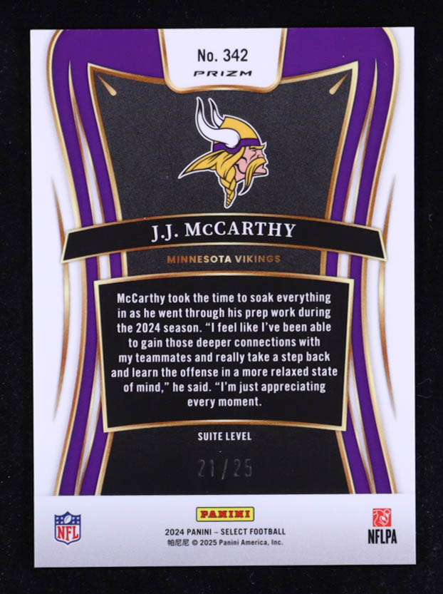 JJ McCarthy 2024 Select Prizm Blue Disco #342 RC #21/25