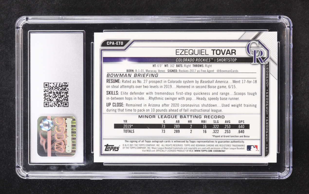 Ezequiel Tovar 2021 Bowman Chrome Prospect Autographs #CPA-ET0 RC (CGC 10 | Autograph Graded CGC 10)
