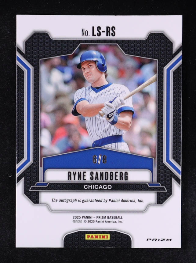 Ryne Sandberg 2025 Panini Prizm Legendary Signatures Prizms Blue Shimmer FOTL #1 #6/8
