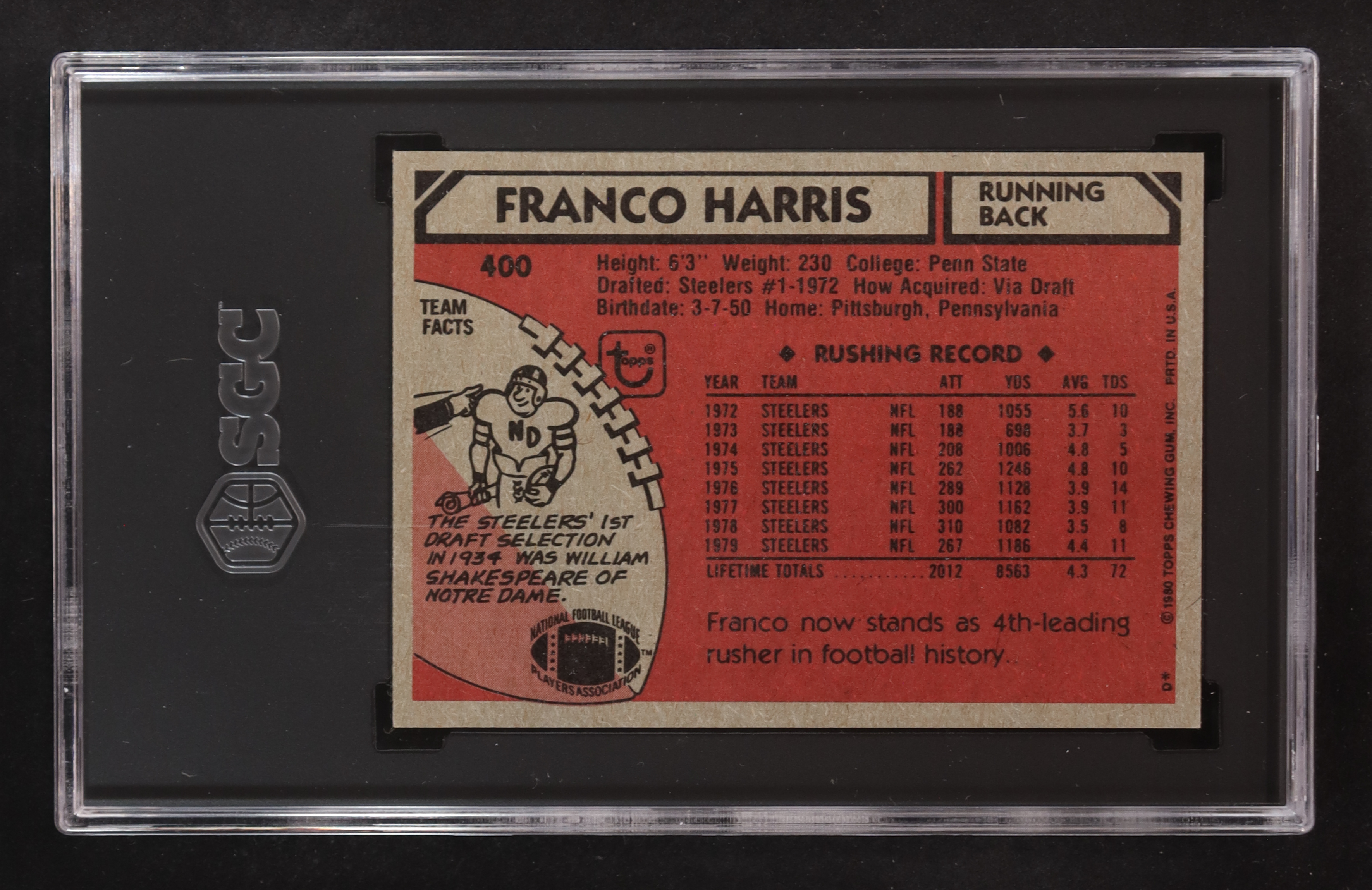 Franco Harris 1980 Topps #400 (SGC 7)