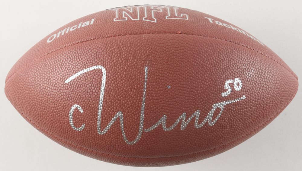 Wilson MVP NFL football has been hand-signed by Chase Winovich