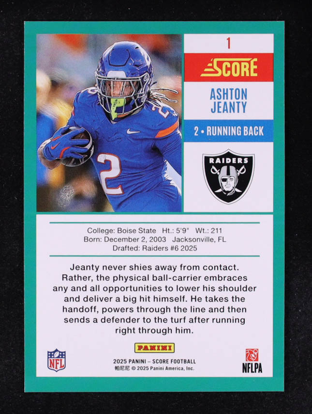 Ashton Jeanty 2025 Score Anniversary Rookie #1 RC