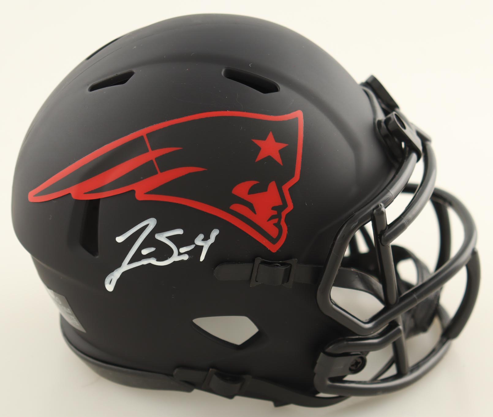 Riddell New England Patriots Eclipse Alternate speed mini helmet. Hand-signed by Jarrett Stidham.