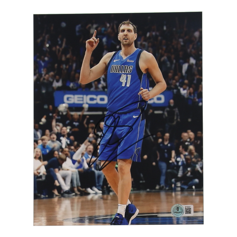 Photo measures 8" x 10" in size and has been hand-signed by Dirk Nowitzki (Dallas Mavericks).