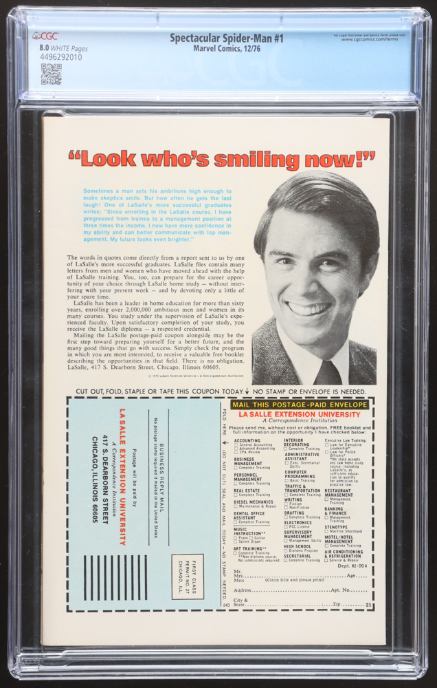 December 1976 "Spectacular Spider-Man" #1 Marvel Comic Book has been graded CGC (8.0). Please see photos for details regarding the condition of the comic