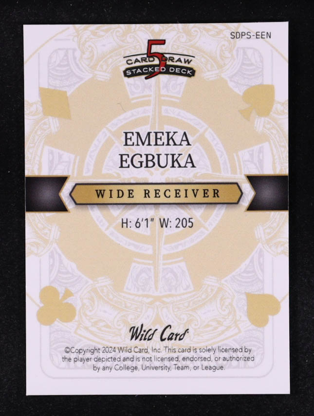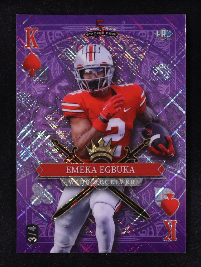 Emeka Egbuka 2024 Wild Card 5 Card Draw Stacked Deck Ace Of Spades Purple Cross Hatch Foil #SDPS-EEN #3/4 RC