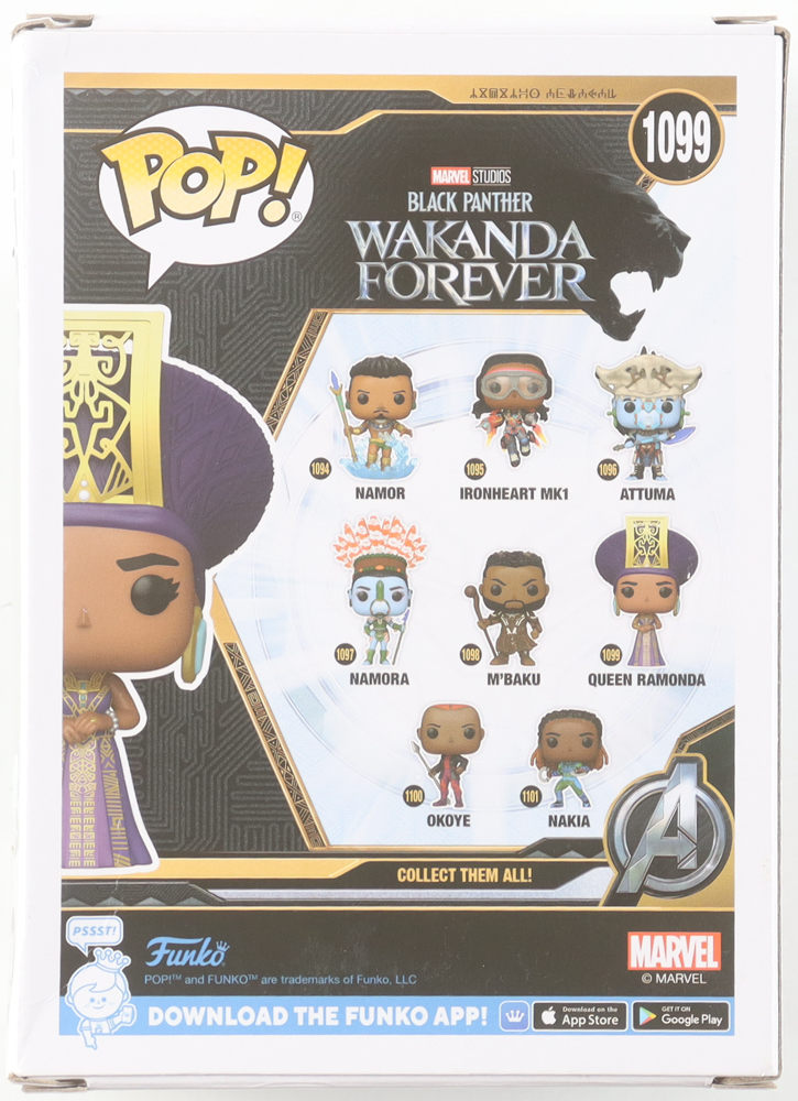 Angela Bassett Signed "Wakanda Forever" #1099 Queen Ramonda Funko Pop! Vinyl Figure (JSA)