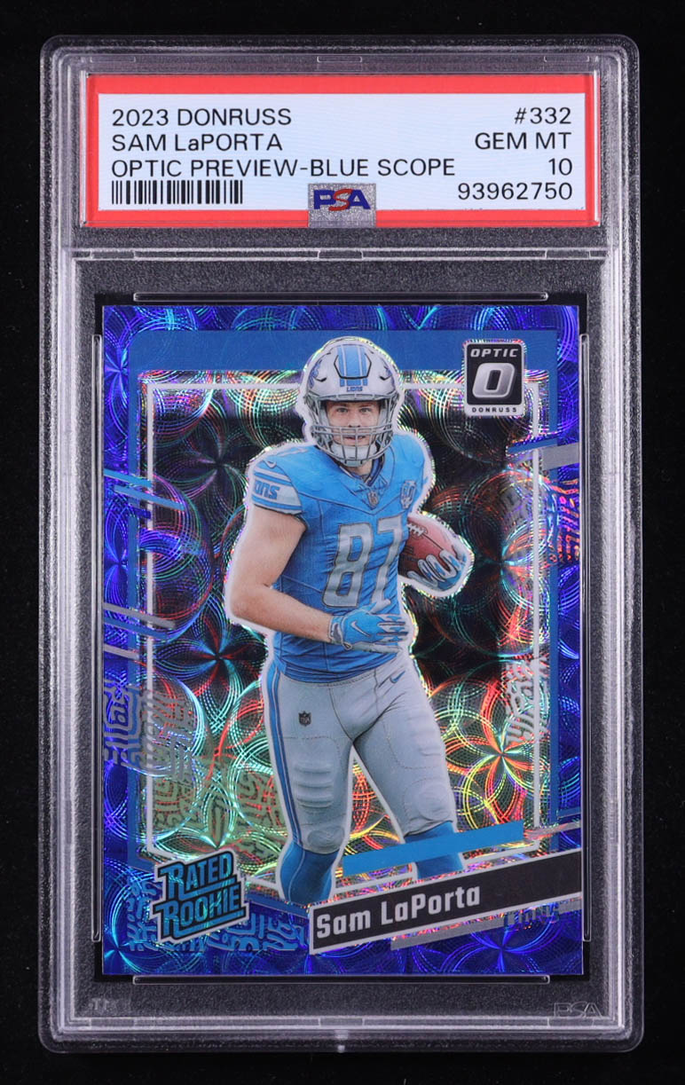 Sam LaPorta 2023 Donruss Optic Rated Rookies Preview Blue Scope #332 RC (PSA 10)