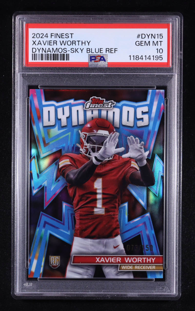 Xavier Worthy 2024 Finest Dynamos Sky Blue Refractors #DYN15 #073/150 RC (PSA 10)